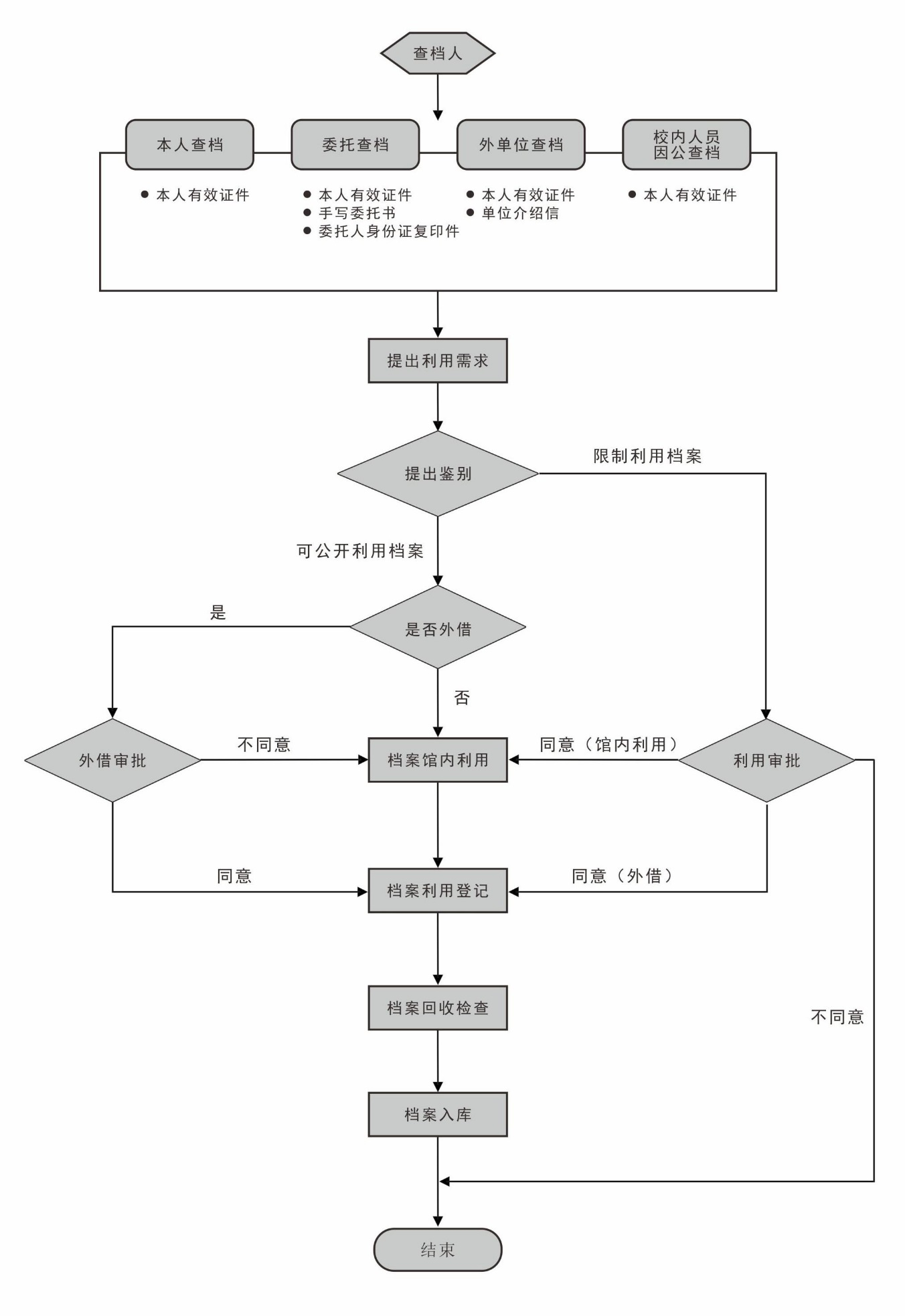 湖北工业职业技术学院档案查阅利用工作流程图